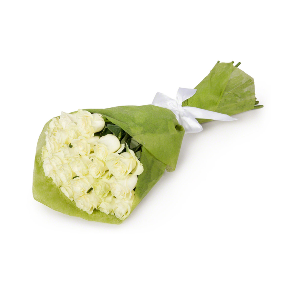 Букет из 25 белых роз в фетре