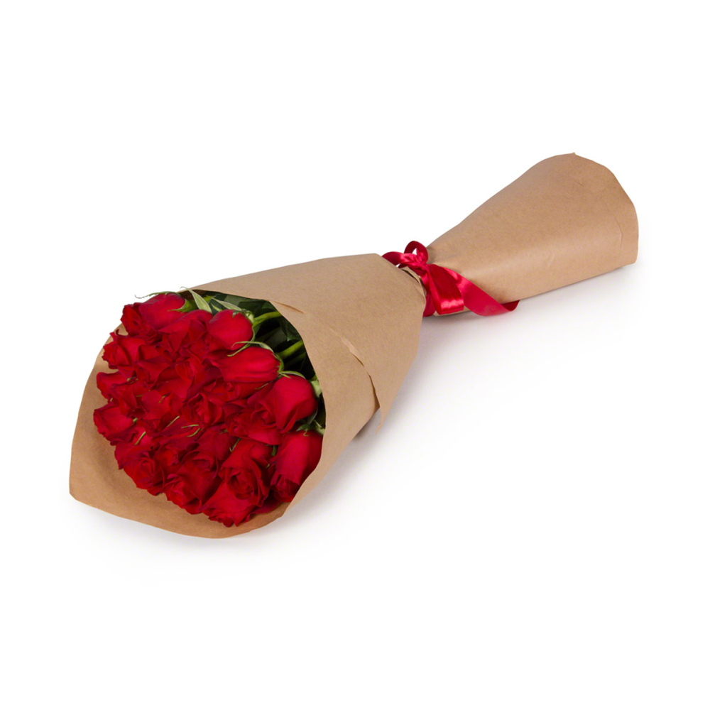 Букет из 25 красных роз в крафтовой упаковке