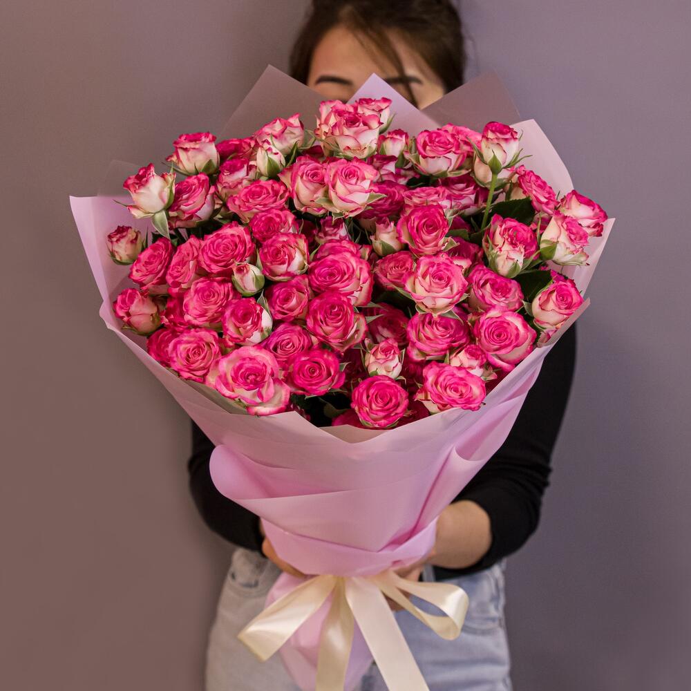 Роскошный букет «Розовый бум» из кустовых роз — это взрыв нежности и романтики! Пышные розовые бутоны в элегантной упаковке создают праздничное настроение. Идеальный подарок для особенных моментов. Купить цветы с доставкой в Еманжелинске от магазина Афло.