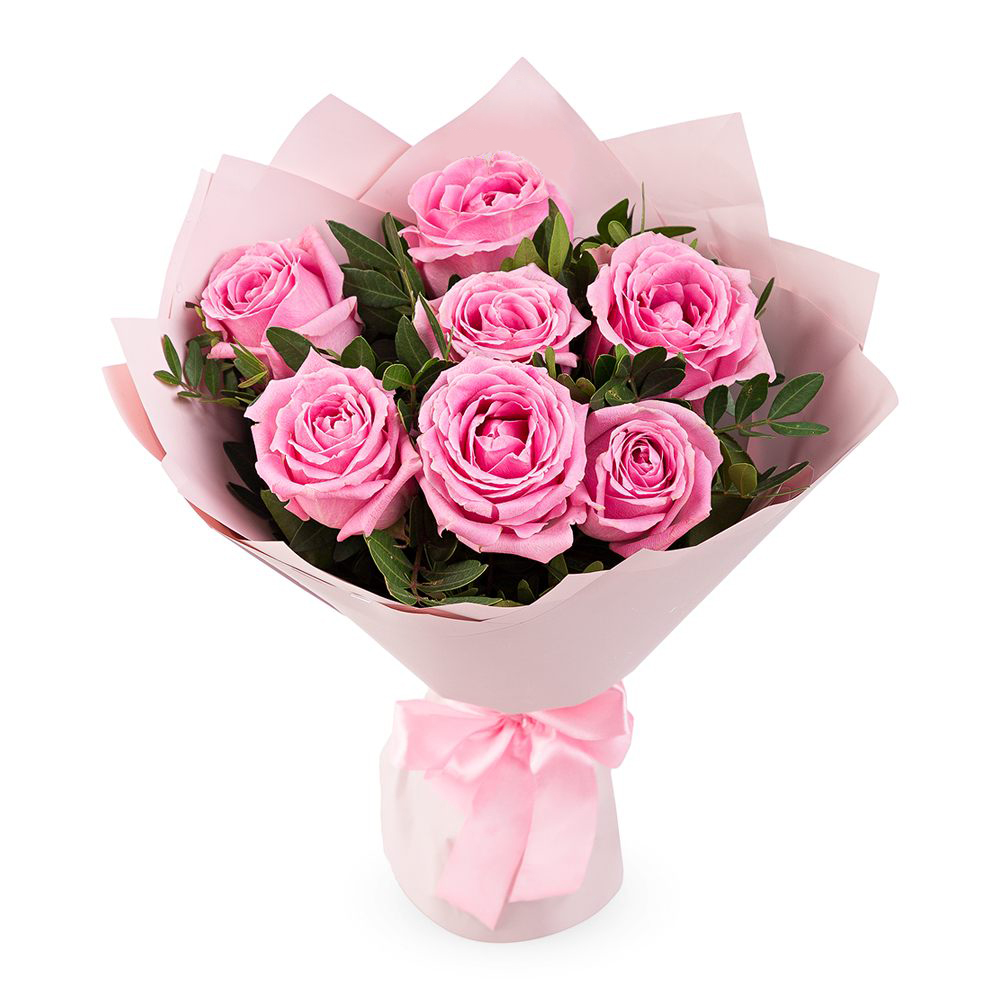Букет из розовых роз с рускусом – нежность в каждом лепестке