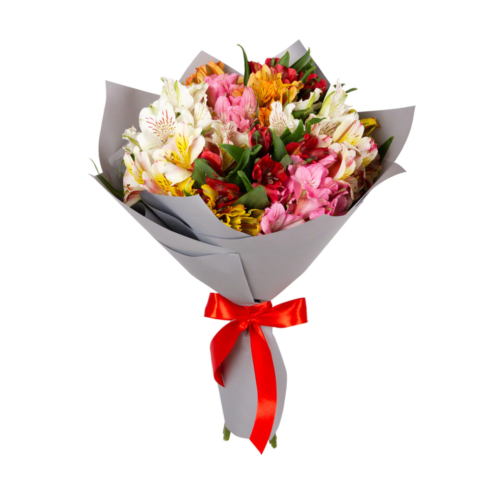 Яркий букет «Рассвет» из разноцветных альстромерий — это взрыв красок и эмоций!