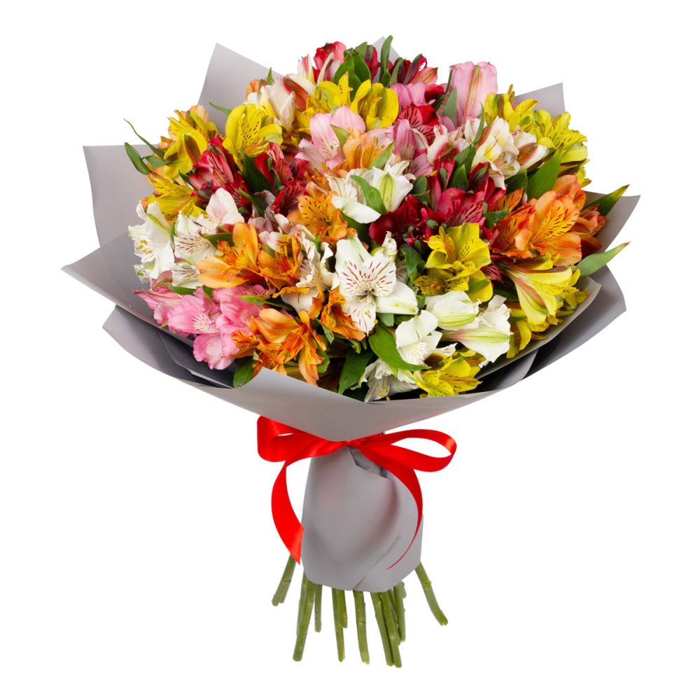 Яркий букет «Рассвет» из разноцветных альстромерий — это взрыв красок и эмоций! Нежные цветы, напоминающие миниатюрные лилии, с причудливыми узорами на лепестках станут идеальным подарком другу, коллеге или любимому человеку. Альстромерия купить в Еманжелинске.