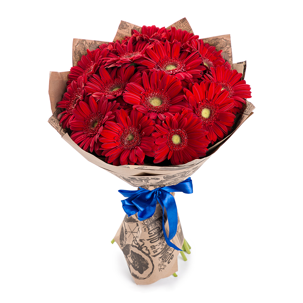 Пышная композиция из 15 свежих красных гербер — идеальный способ выразить сильные чувства.