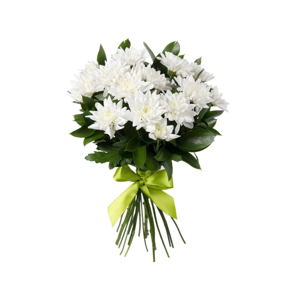 Букет малый «Белый ангел» – скульптурная чистота белых хризантем