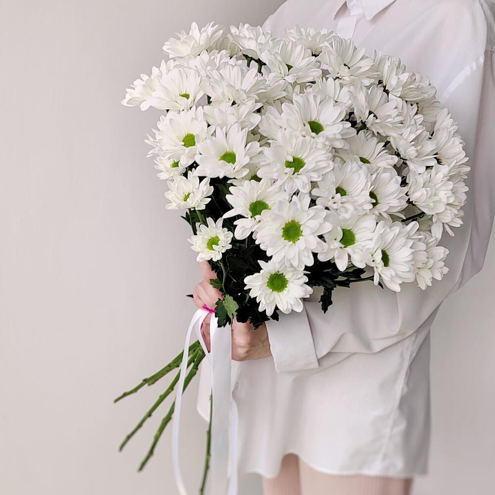 Очаровательный букет «Ромашка» из 9 белых кустовых хризантем.